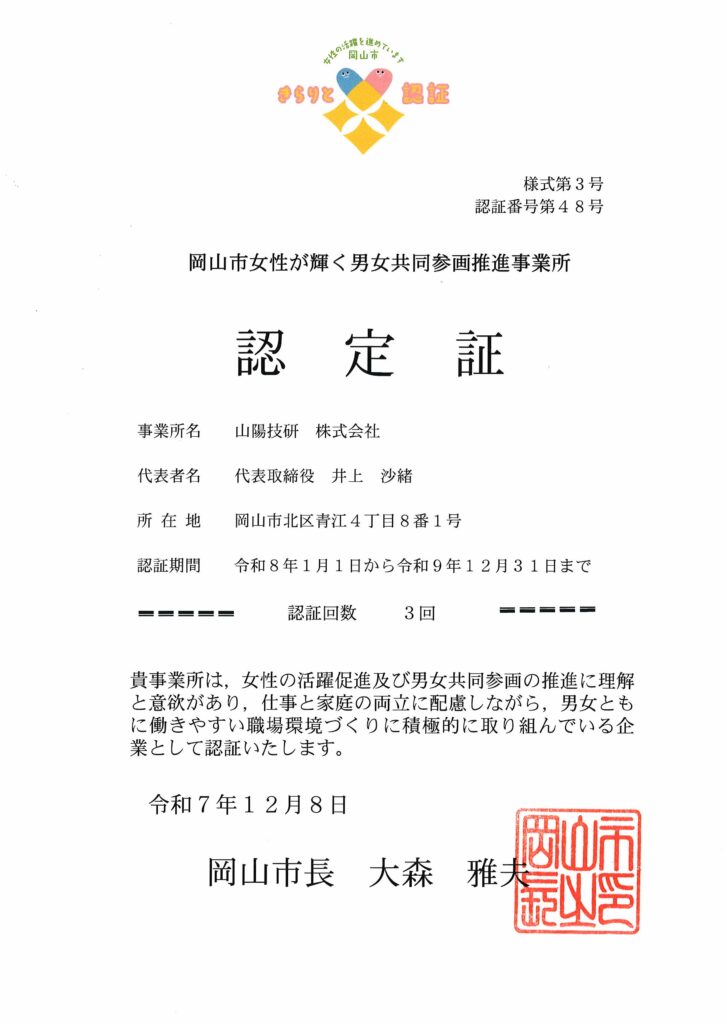 - 岡山市女性が輝く男女共同参画推進事業所認定